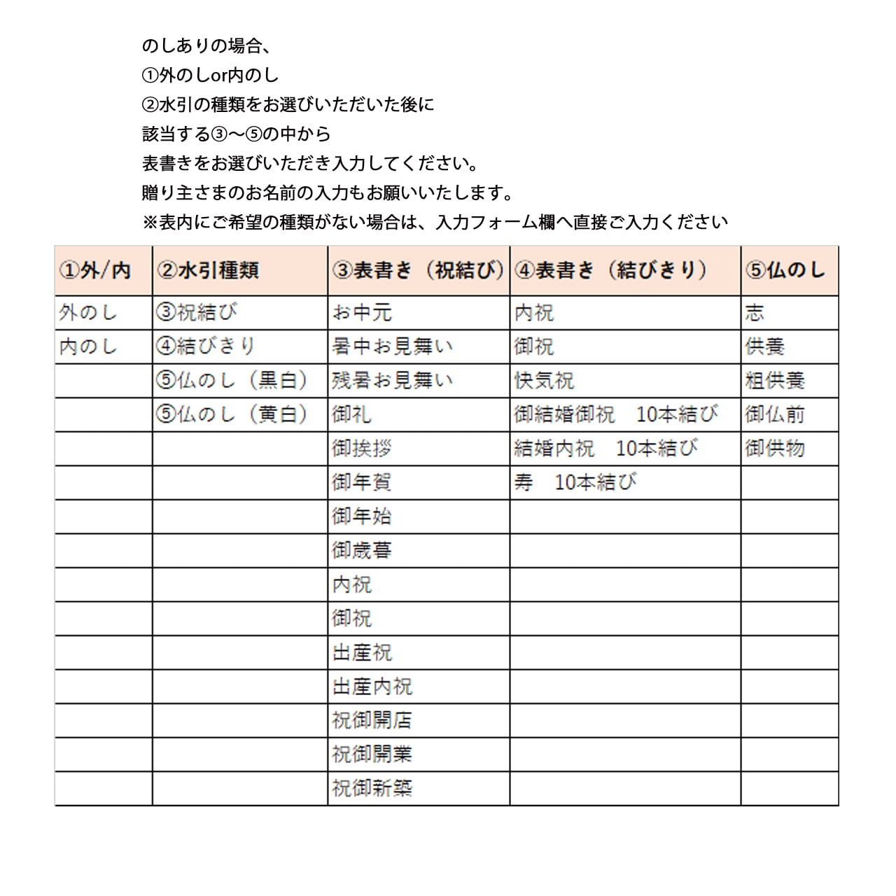 ※のし掛け・名入れをご希望される際は詳細を上部「のし」欄にご記入ください